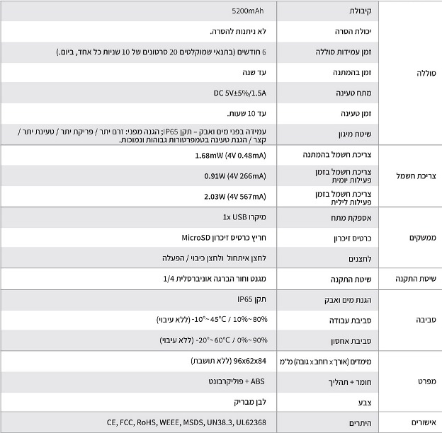 ויכולה לתפקד במצב המתנה (stand-by) עד 12 חודשים.