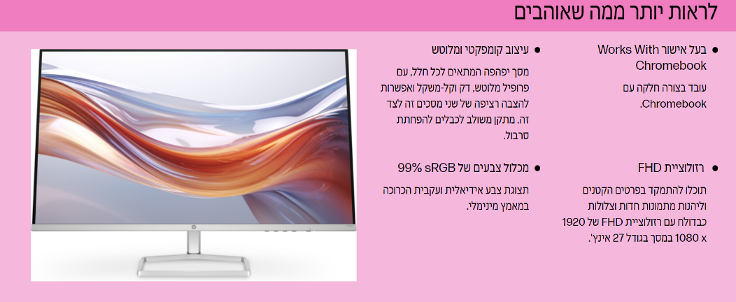 ומדריך להתקנה ארגונומית ב- HP Display Center מאפשרים התאמה מרבית לנוחיותכם.