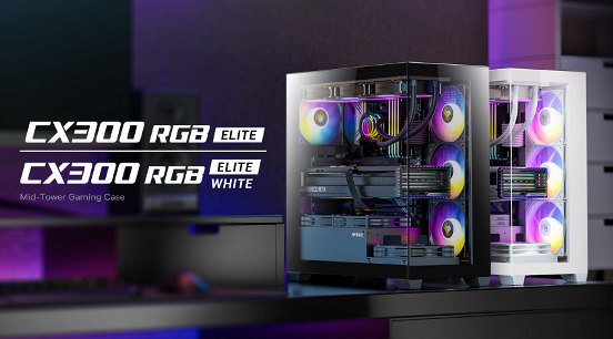 מארז גיימרים לבן ללא ספק כוח חלון צד אנטק Antec 0-761345-10094-3 CX300 Elite Mid-Tower White Included Fan 4x120mm Gaming Case RGB