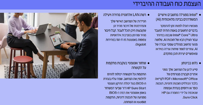 HP Wolf Security for Business יוצרת הגנה חזקה, שנשמרת על ידי חומרה ופועלת תמיד.