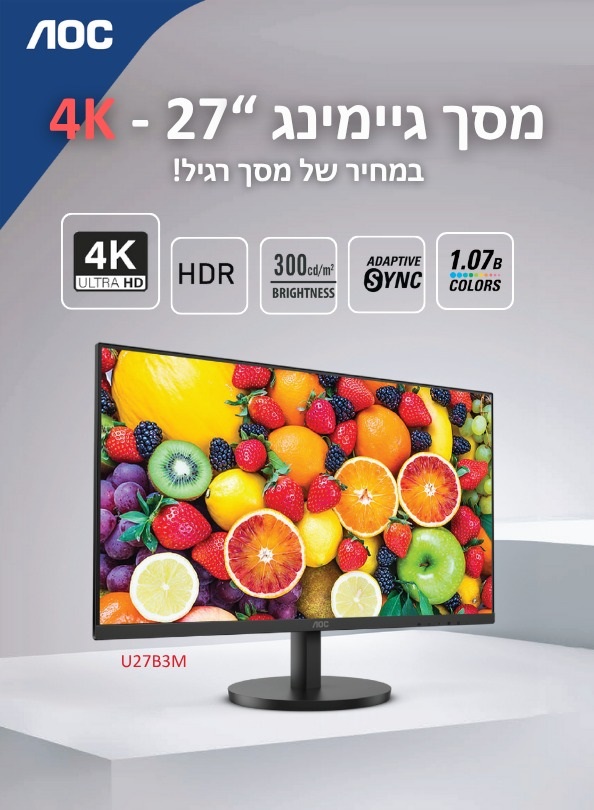 שפר את חווית הצפייה שלך עם AOC U27B3M.