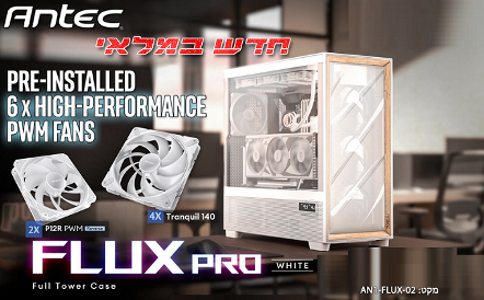 מארז מחשב לבן מגדל מלא חלון צד שקוף ללא ספק-כוח אנטק Antec 0-761345-10156-1 Flux Pro White EATX Full Tower Included 6 FAN Tempered Glass