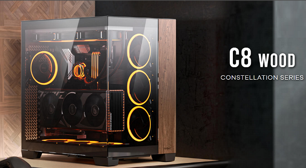 מארז מחשב מגדל מלא אקווריום שחור עץ אנטק Antec 0-761345-10079-3 C8 Wood Black E-ATX 3x 360mm Radiator Support Type-C