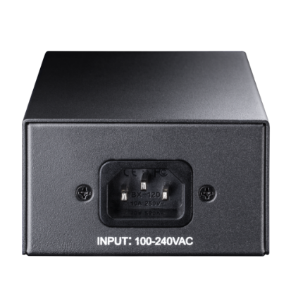 מתאם PoE צמוד קיר מתכת מתכת המזריק עד 90W כוח לכבל ה- Ethernet כדי להפעיל את התקן PoE.