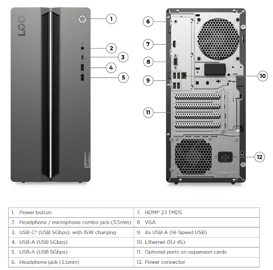 מחשב נייח מותג לגיימרים אינטל דור 14 לנובו Lenovo 90X00060YS LOQ Tower 17IRR9 Intel Core i5-14400F 10 Cores 20MB Cache 4.7GHz Nvidia GeForce RTX 4060 8GB GDDR6 32GB DDR5 1TB NVME RJ45 2.5GbE WiFi 6E Free Dos