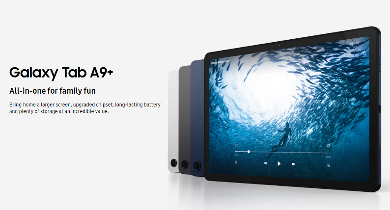 טאבלט סמסונג טאב מסך מגע כולל תקשורת סלולרית Samsung Galaxy Tab A9+ X216 E000000214 Qualcom SM 6375 11 Inch Touch 4GB RAM 64GB ROM 5G LTE Android 13 Gray