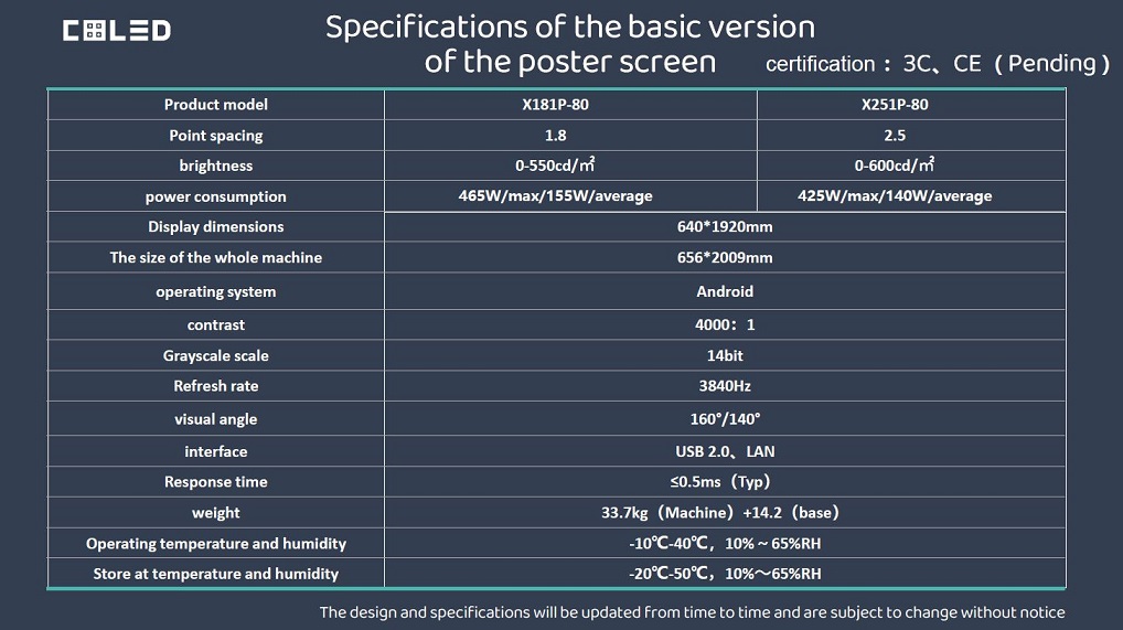מפרט מסך - גוף המסך הוא 80 אינץ', בסגנון סטנדרטי. העובי הוא 40 מ"מ, המתאים למגוון סצנות