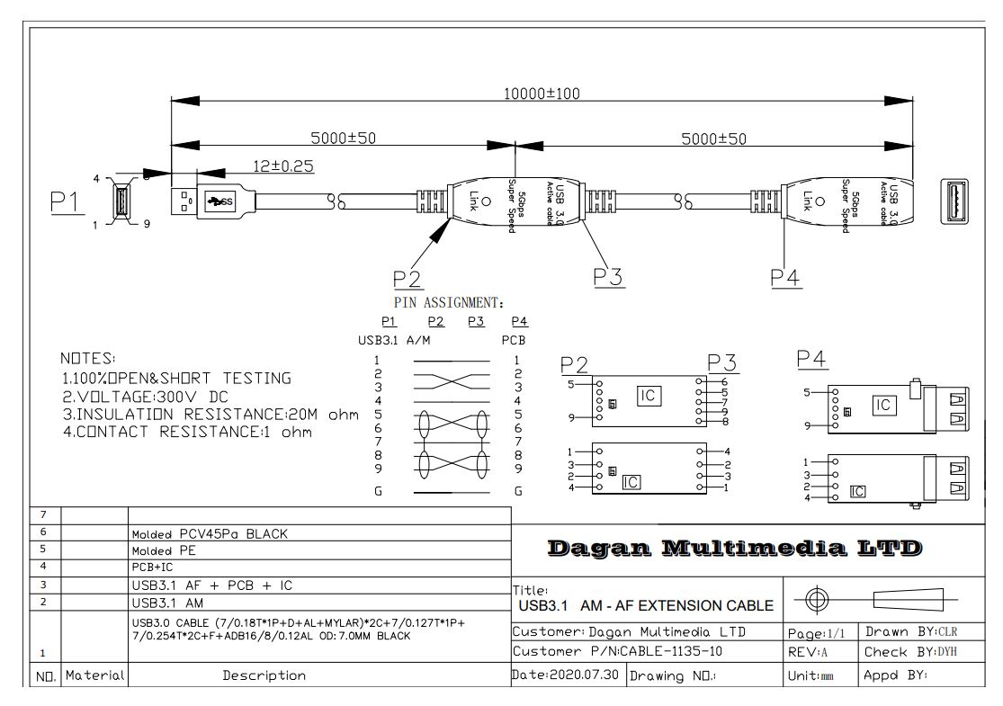 כבל עם מגבר מובנה, שמאפשר לשמור על מהירות העברת נתונים 5Gb/s של תקן USB 3.0 לאורכים גדולים.