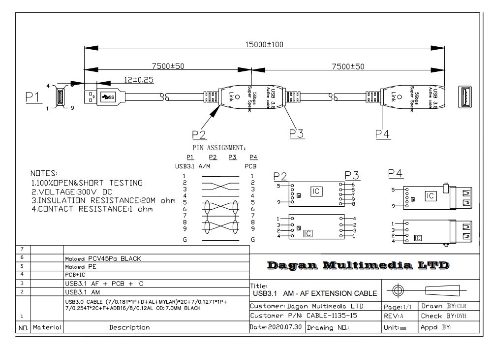 כבל עם מגבר מובנה, שמאפשר לשמור על מהירות העברת נתונים 5Gb/s של תקן USB 3.0 לאורכים גדולים.