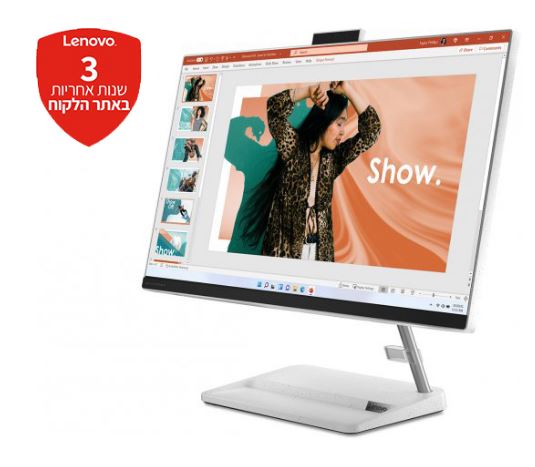 מחשב נייח הכל באחד אול אין וואן לבן 23.8 אינץ' מגע לנובו Lenovo F0GH014DIV IdeaCentre AIO 3 24IAP7 23.8 Inch Touch All-In-One FHD 1920x1080 IPS Intel Core i5-13420H 8 Cores 12MB Cache 4.6GHz 16GB DDR4 1TB NVMe Camera Windows 11 Home White