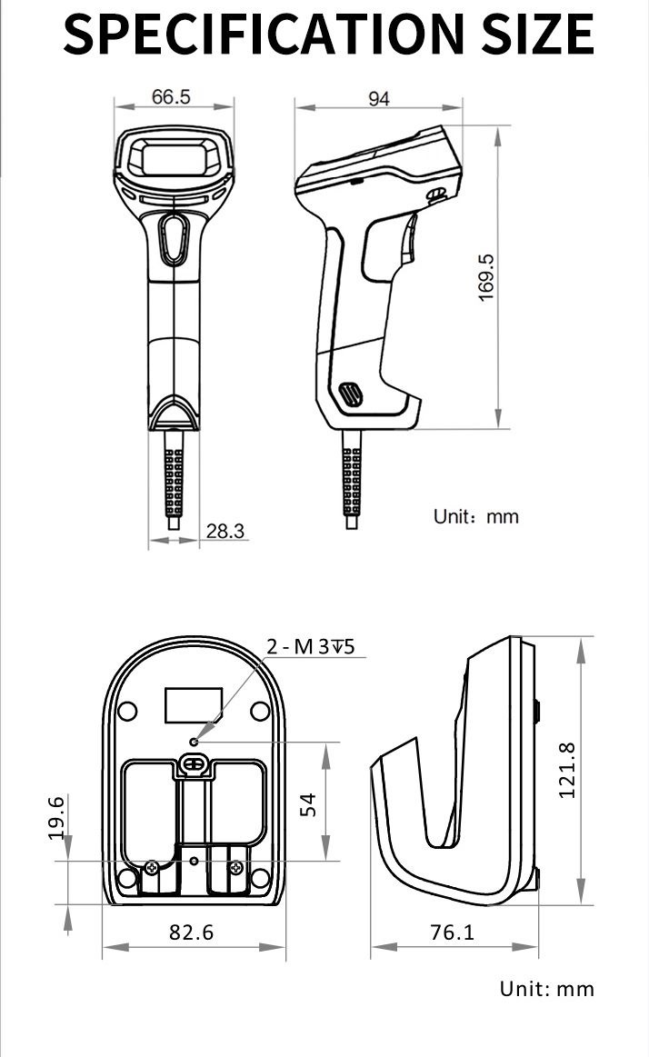 סורק ברקוד תעשייתי כף יד עם מעמד טעינה קורא ברקוד דו מימדי 2.4G סורקי קוד qr אקדח סריקה אלחוטי