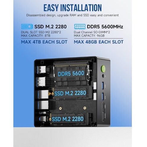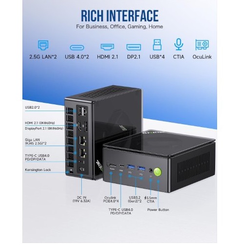 מחשב מיני קטן מעבד AMD רייזן 7 גמקטק GMKtec NucBox K8 Plus R7 AMD Ryzen 7 8845HS 8 Cores 5.1GHz 32GB DDR5 1TB NVME 2x2.5GbE BT 5.2 WiFi 6E HDMI Windows 11 Pro