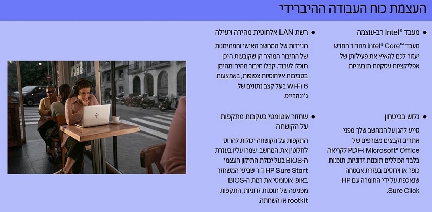 HP Wolf Security for Business יוצרת הגנה חזקה, שנשמרת על ידי חומרה ופועלת תמיד.