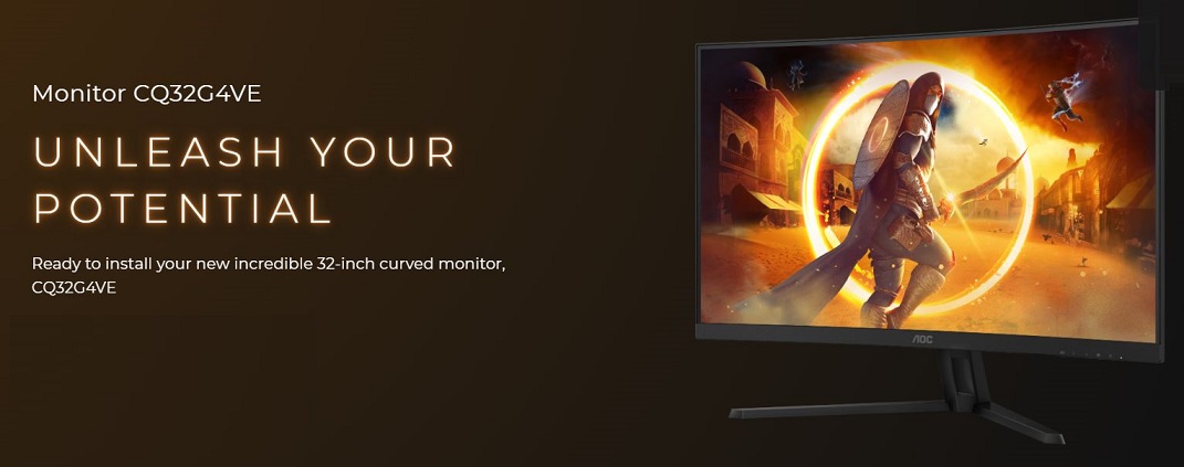 מסך מחשב לגיימרים 31.5 אינץ' קעור AOC CQ32G4VE 31.5 Inch Curved 2K 2560x1440 QHD 180Hz Fast VA 0.5ms 2x HDMI DP Adaptive Sync