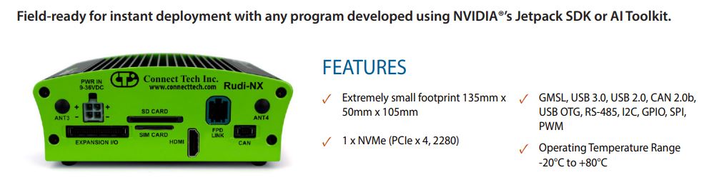 ה- Rudi-NX של Connect Tech הוא מכשיר המחשוב האולטימטיבי בתחום הבינה המלאכותית עבור יישומים