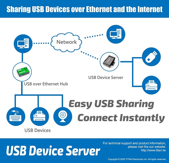 שרת ה- USB של TITAN, מאפשרת חיבור USB מרחוק. האפליקציה הופכת את כל יציאות ה- USB ברכזת