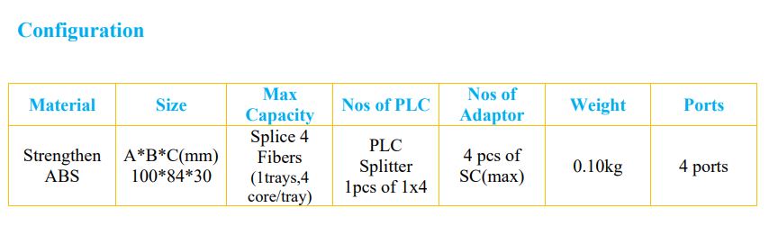 מתקים להתקנה פנימית FTTH בבית או במשרד. מגיע עם ברגים לקיבוע יחידת הבסיס לקיר. עם מכסה נתיק.