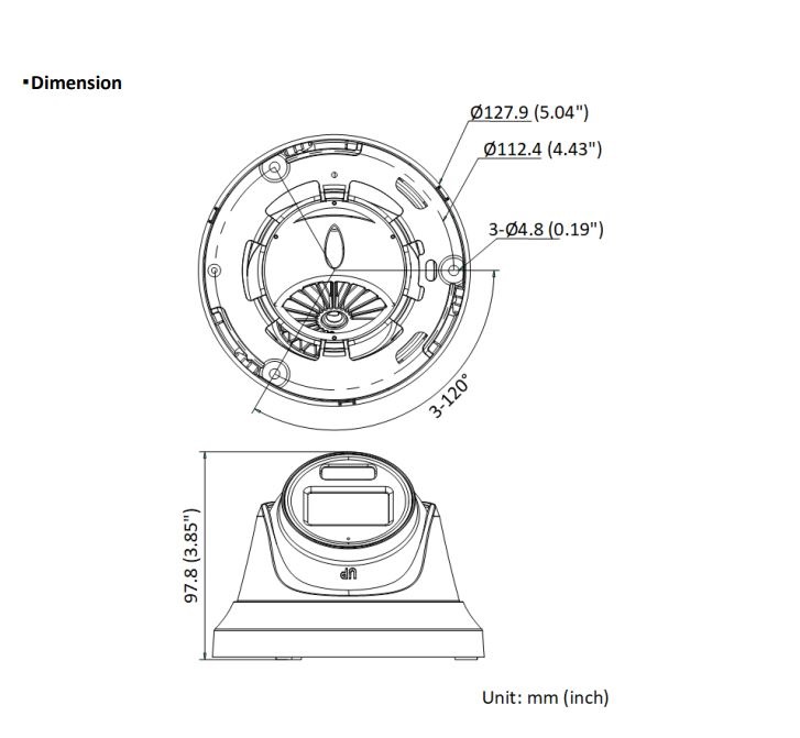 Dimension Ø 127.9 mm × 97.8 mm (Ø 5.04" × 3.85")