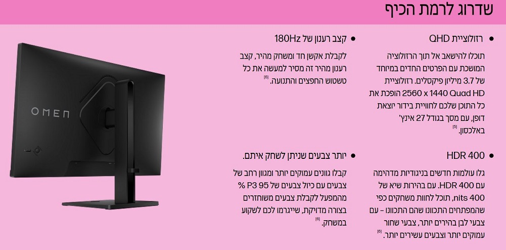 סדרה: OMEN 27 inch QHD 180Hz Gaming Monitor