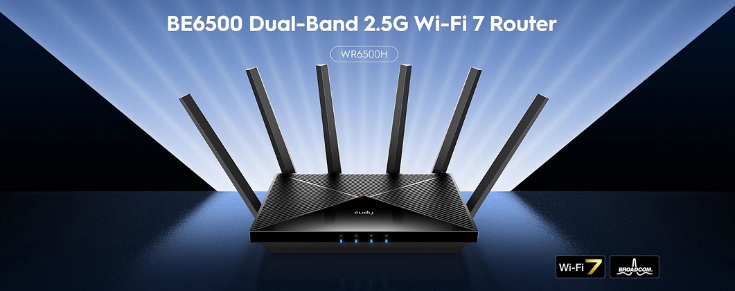 נתב אלחוטי 5 כניסות שני ערוצים קודי Cudy WR6500H 1.0 BE6500 2.5G Wi-Fi 7 Router 1x 2.5GbE 4x 1GbE