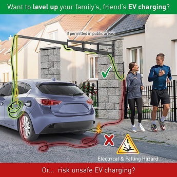 # זרוע ברקן לכבל טעינת רכב חשמלי, מגינה מנפילות והתחשמלות הנובעים משימוש לא בטיחותי, על ידי הרמת הכבל