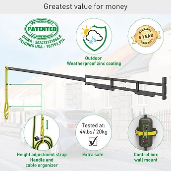 דגם EV300WM - זרוע ברקן ארוכה מאד, 305 ס"מ, להגנת הכבל ואנשים בטעינת רכב חשמלי
