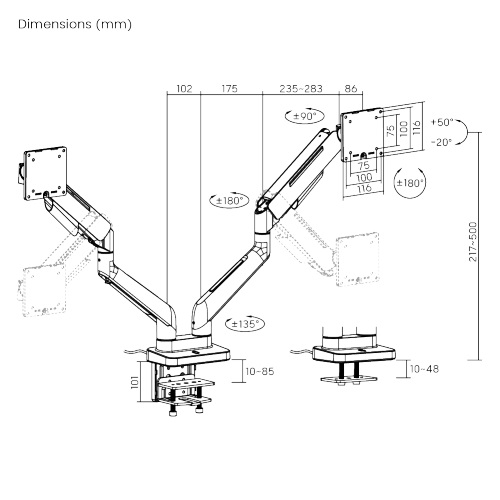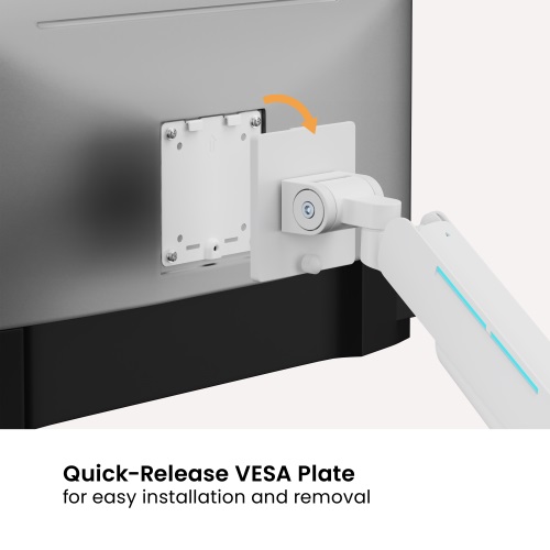 זרוע המסך הכפולה LDT85-C024L RGB Gaming כוללת פלטת VESA עם שחרור מהיר להתקנה קלה,