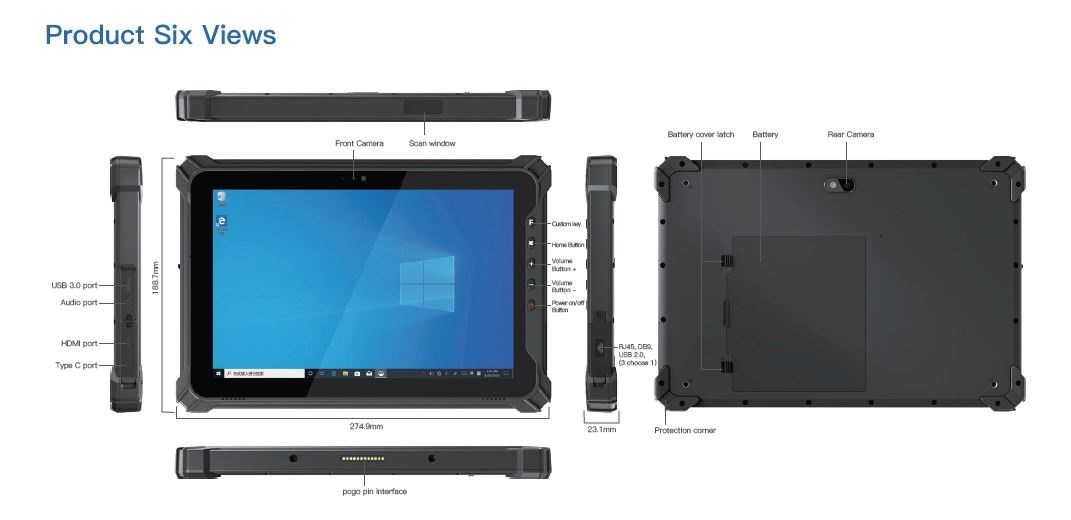 טאבלט צבאי מוקשח 10.1 אינץ' 4G LTE נגד מים, אבק ונפילות תקן IP65 כולל מסופון סורק ברקוד מובנה 1D/2D קודטה KODATA RT10 10.1 Inch Intel N5100 8G RAM 128GB 4G LTE NFC BT WiFi IP65 1D/2D Barcode Scanner 5000mAh Battery Windows 11
