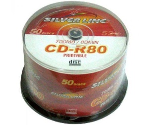 דיסקים לצריבה סילבר ליין פרינטבל ניתן להדפסה Silver Line CD-R X52 700MB 50pc Printable