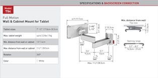 זרוע לטאבלט ברקן תנועה מלאה 360 מעלות חיבור לקיר 3 מפרקים לתנועה מלאה כולל צידוד והטייה לטאבלט צבע לבן ''Barkan T54 12-7
