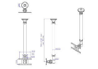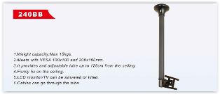 זרוע תקרה אוניברסלית ארוכה מאסיבית לטלוויזיה כולל צידוד הטייה וסיבוב עד 42'' משקל עד 15 ק''ג GoldTop Tech Arm GT240BB TV Ceiling Mount 790mm UP To 1290mm