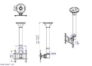 זרוע תקרה אוניברסלית ארוכה לטלוויזיה כולל צידוד והטייה עד 20 ק''ג GoldTop Tech Arm GT873DB TV Ceiling Mount 640-1040mm Up to 42 Inch