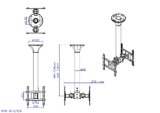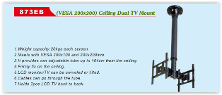 זרוע תקרה כפולה לשתי טלוויזיות כולל הטייה וסיבוב עד 42'' משקל עד 40 ק''ג GoldTop Tech Arm GT873EB Ceiling Dual TV Mount 640mm Up To 1040mm