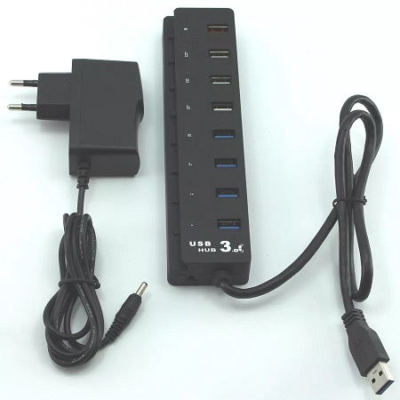 רכזת האב 7 פורטים +1 טעינה כולל שנאי מתח גולדטאץ Gold Touch E-USB3.0-HUB7-A ACTIVE USB3.0 HUB 8Ports 4USB3.0 + 3 USB2.0 + 1Charge