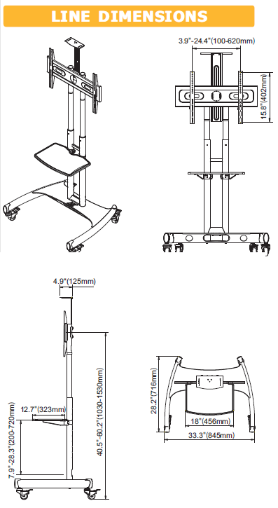 בסיס גלגלים רחב מאפשר יציבות מקסימלית וגמישות בתנועה עם המסך.