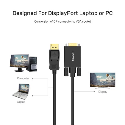 כבל דיספליי פורט Unitek Y-5118F 1.8Meter DisplayPort To VGA Cable Mail To Female