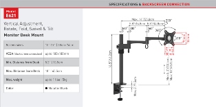 זרוע תלייה למסך חיבור מלחציים לשולחן עם שלושה מפרקים 5 תנועות Barkan E621 Arm LCD Mount