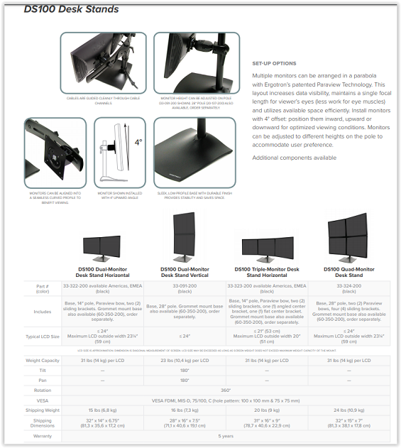 DS100 צג כפול מעמד דלפק, אנכי