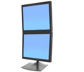 זרוע תליה לשני מסכים עם מעמד שולחני אחד מעל השני כולל צידוד והטיה Ergotron 33-091-200 DS100 DUAL-MONITOR DESK STAND, VERTICAL