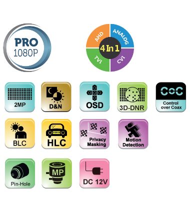 מצלמת נסתרת בטכנולוגיית ה-AHD מסידרת ה-Pro המקצועית