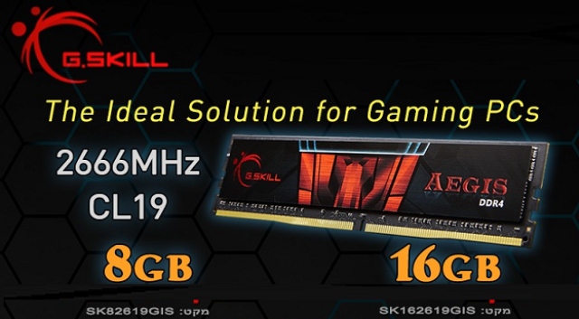 זכרון למחשב נייח ג'י סקיל G.Skill Aegis F4-2666C19S-8GIS DDR4 8GB (8GBX1) 2666MHz