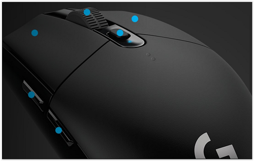 ל- G305 יש גם לחיצה אמצעית, כפתור DPI ושני כפתורי צד שניתן לתכנת להעדפותיך באמצעות Logitech G HUB.הגדרות מתקדמות דורשות Logitech G HUB זמינות להורדה באתר logitechG.com/downloads