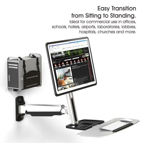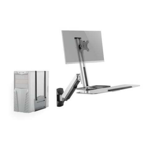 זרוע עמדת עבודה ישיבה עמידה לקיר למסך מחשב,מקלדת ועכבר עד 8 ק''ג כולל מתקן קיר חמחשב נייח לומי Lumi DWS02-W01 SINGLE DISPLAY SIT-STAND WORKSTATION WALL MOUNT For most 13''-32'' LED LCD monitor screens