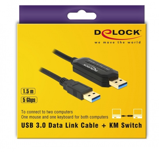 כבל להעברת נתונים ממחשב למחשב מהיר מאוד במהירות 5 ג'יגה לשנייה USB 3.0 להעברת מידע בין 2 מחשבים Delock D83647 Cable Data Link KM Switch USB 3.0 Type A male USB 3.0 Type A male 1.5m
