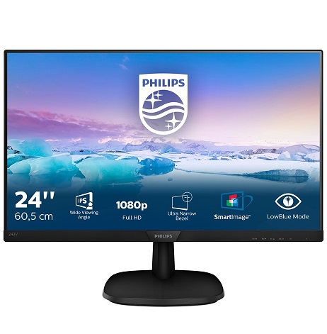 מסך מחשב דק רחב פיליפס מסגרת דקה כולל רמקולים סדרת פרופשיינל Philips 243V7QJABF/00 24'' IPS Full HD 1:20,000,000 4MS Flicker-free LowBlue HDMI DP VGA Frameless