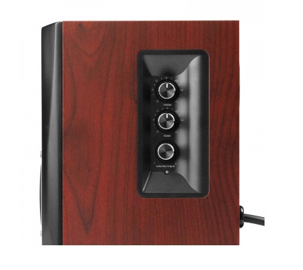 שלושה ידיות ממוקמות בצד המשפיעות על הבס, הטרבל והנפח עבור מערכת 2.1 כולה. לאחר כיבוי, נורית ההפעלה תידלק