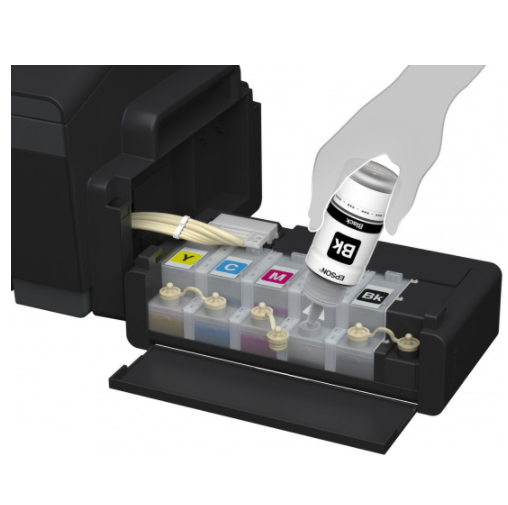 מה בקופסה 4 x בקבוקי דיו נפרדים של 70 מ"ל (Bk,C,Y,M) + בקבוק דיו שחור נוסף, התקן ותכנית עזרה (CD), Ink set, מכשיר עיקרי, כבל חשמלי