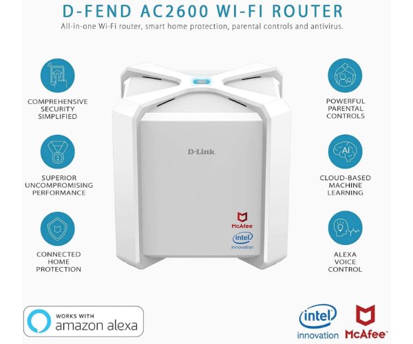 נתב דילינק עוצמתי אלחוטי עם הגנת D-Link DIR-2680 AC2600 MU-MIMO Up to 800+1733Mbps in 2.4GHz and 5GHz Wireless Gigabit Router Powered by McAfee