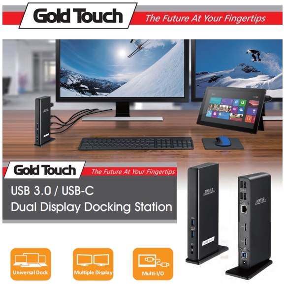 דגם תחנת עגינה אונברסלית למחשבים ניידים Gold Touch USB3.0 Type A & C dual display docking station UDS-2H