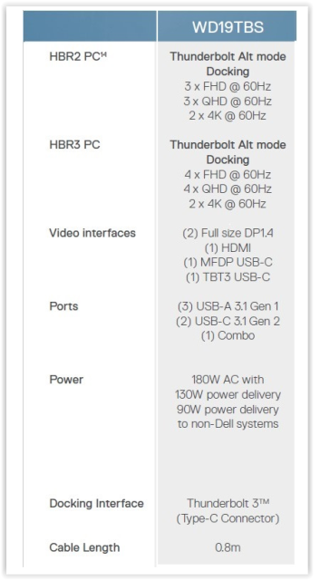 תחנת עגינה למחשב נייד דל Dell Thunderbolt Docking Station WD19TBS 180W HDMI, 2 x DP, USB-C 210-AZBV
